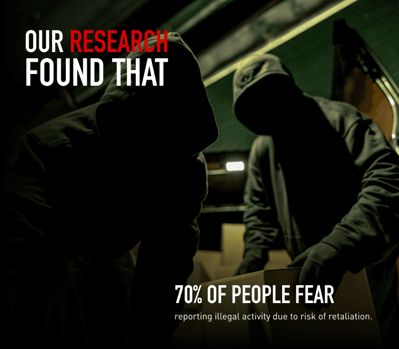 Our research found that 70% of people fear reporting illegal activity due to risk of retaliation.